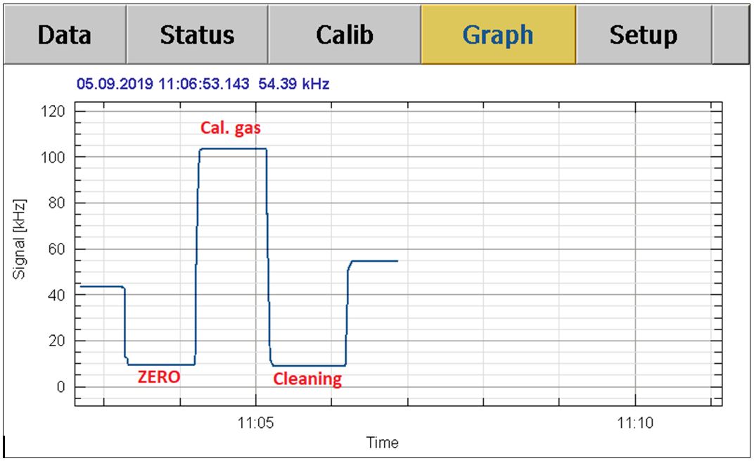 The AL5005 calibrates within minutes, using only a low amount of calibration gas and an in-built zero gas source. The calibration procedure is fully automatic and can be scheduled in custom-set time intervals. The gas concentration is displayed in real time and can be logged via a standard RS-232 interface e.g. by SqeezeDat. Contrary to the AL5001 and AL5002, the AL5005 is equipped with a USB stick for data storage in stand-alone operation.