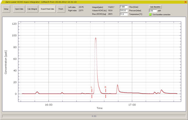 The Aero-Laser Peak Integrator was designed to determine the exact mass content of a trace gas from a concentration peak. The software post-processes data obtained by an Aero-Laser trace gas analyzer. Sampling could be done e.g. by thermal desorption or by evaporating the gas content in an oven. The Micro-Chamber µ-CTE is ideal to determine the content of formaldehyde of a sample of well known weight at 120°C.